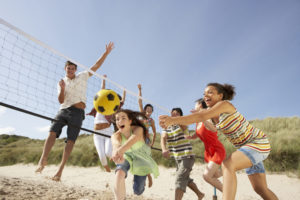 Group Of Teenage Friends Playing Volleyball On Beach